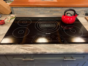 • Unlike gas, electric coil, or glass top radiant electric cooktops, induction cooktops heat the pot through the energy between the metal pot and magnets beneath the smooth glass top — yet the smooth cooktop surface itself remains relatively cool. And unlike other cooking methods, it does not use flames or red-hot elements to cook. There is no loss of energy through radiating heat from the surface. Kitchens are cooler. Induction is safe for use around children, elders, and those who may forget to turn the stove off.