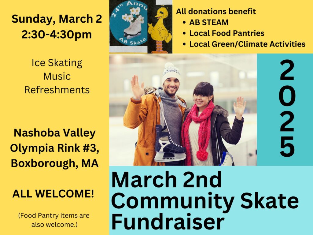 This event is hosted by AB STEAM, a community group with which EnergizeActon.org has worked. Although we are advertising this event, please note that EnergizeActon.org is co-sponsored by the Town of Acton and cannot receive donations. Funds from the above event will not be used for EnergizeActon.org programming.